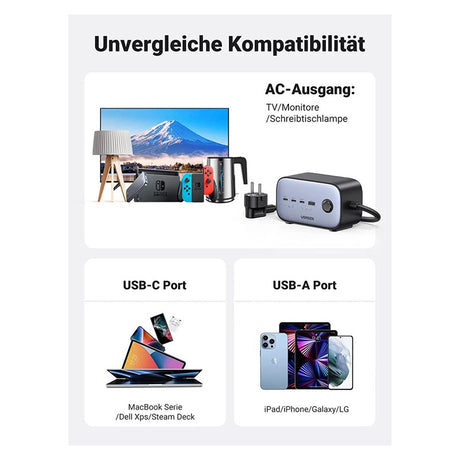 УНИВЕРСАЛНО ЗАРЯДНО УСТРОЙСТВО X757 220V 2xUSB-C 1xUSB A GaN 100W UGREEN