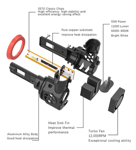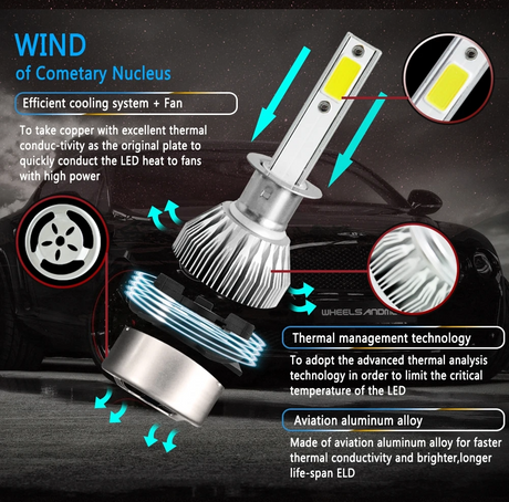 LED крушки за фарове C6 H11/H8/H9 6000Lm 5500K-6500K 12V за къси и дълги