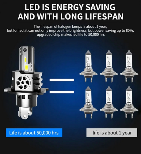 LED крушки за фарове C6 H4 6000Lm 5500K-6500K 12V за къси и дълги