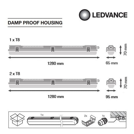 LED лампа Ledvance DP Housing 1200P, за таван, IP65 защита, сива,2 лампи