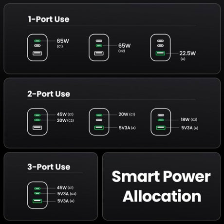 УНИВЕРСАЛНО ЗАРЯДНО УСТРОЙСТВО X755 220V 2xUSB-C 1xUSB A GaN 65W UGREEN