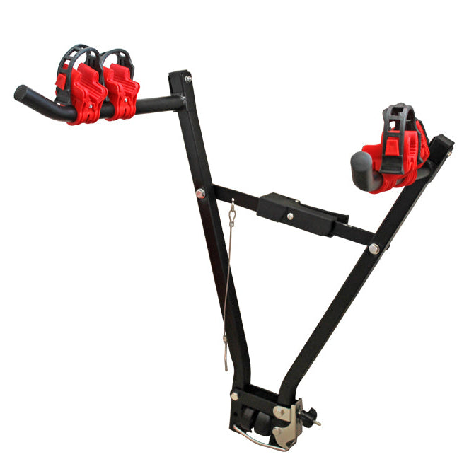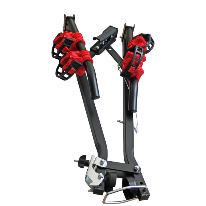 Тази двойна стойка е практично и лесно решение за транспортиране на велосипеди, което се монтира директно върху теглича на вашия автомобил. Тя е универсално съвместима и предлага сигурен превоз за до два велосипеда.