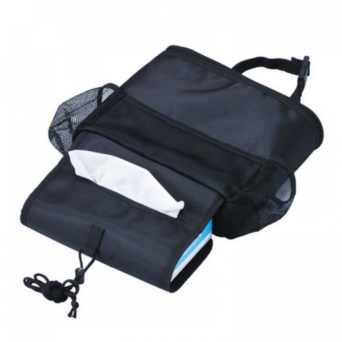 - Органайзера разполага с отделение, където може да закрепите кутия със салфетки.