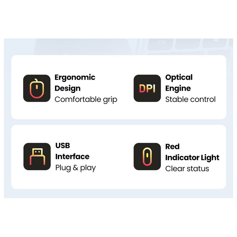 UGREEN MU007 е жична компютърна мишка, която предлага стабилна и незабавна връзка, без нужда от батерии или притеснения за смущения. Със своя 1.5-метров кабел, тя осигурява достатъчно свобода на движение, като същевременно гарантира максимална надеждност за интензивна ежедневна работа.